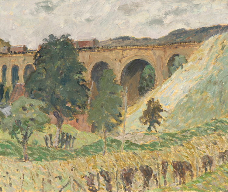 Kurpershoek, TheoGoederenspoorlijn Aken-Tongeren bij St. Martensvoerenolie op doek, 45 x 54cm verso studiostempel ‘.__(‘Categorie’,’paolco-gallery-menu’).’: Klassiek modern