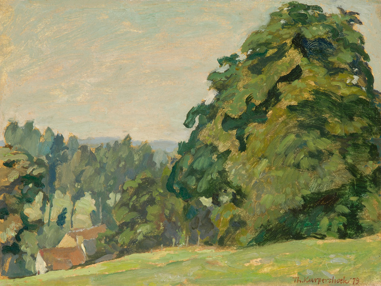 Kurpershoek, TheoZomerlandschap met zicht op het atelierolieverf op doek, marouflé, 18 x 24cm gesign r.o. en gedat. 1979 ‘.__(‘Categorie’,’paolco-gallery-menu’).’: Klassiek modern