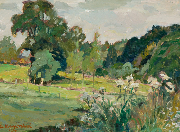 Kurpershoek, TheoLandschap bij Charneux, Belgiëolie op doek, marouflé, 18 x 24cm gesign. r.o. en gedat. 1982 ‘.__(‘Categorie’,’paolco-gallery-menu’).’: Klassiek modern